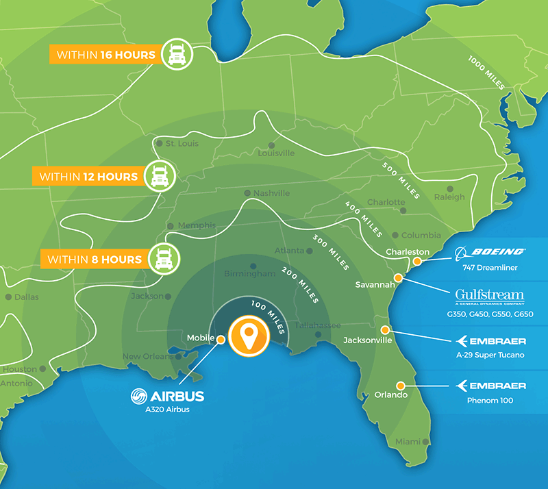 我们位于东南五家飞机oem的中心。